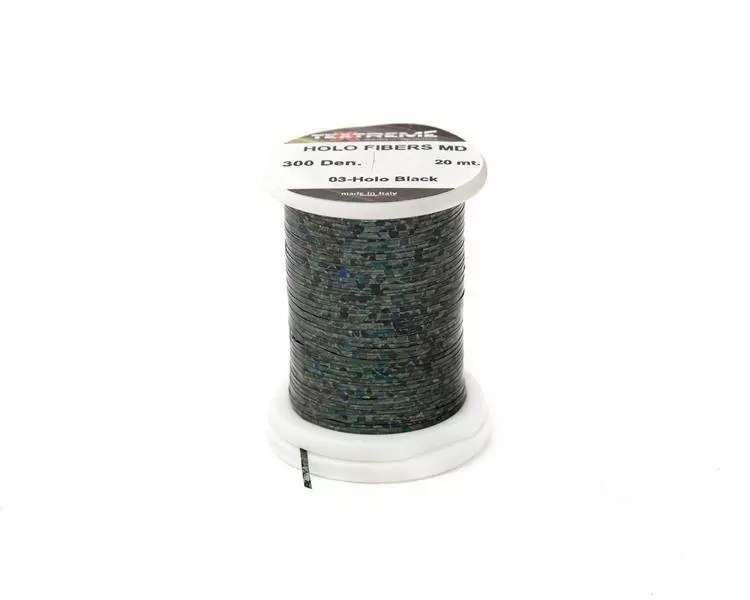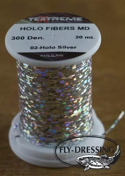 Flat Mylar oppnådd med laserproduserte holografiske effekter. Egnet for bånd av bånd og streamers kropp, det er et essensielt materiale for å gi en smule glans når den brukes i kombinasjon med andre fibre som Crystalflash, blank flash eller andre naturlige fibre, som marabou i streamers haler. Størrelsene 1/32 ”e 1/16” er indikatorer spesielt for store saltvannsstrømmer.
