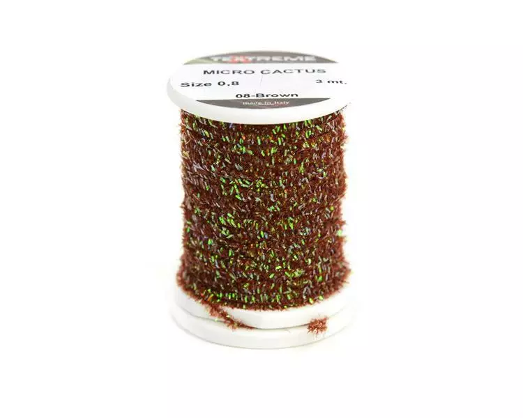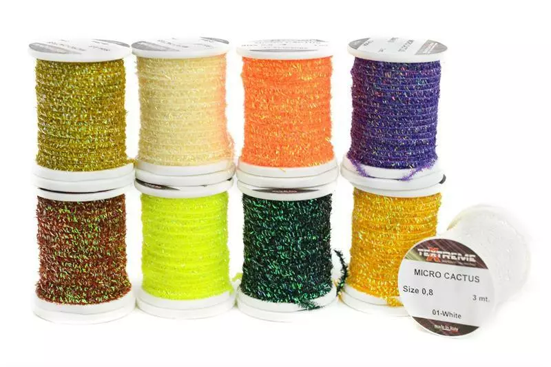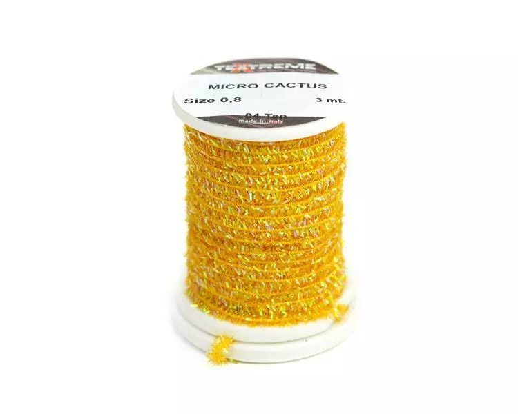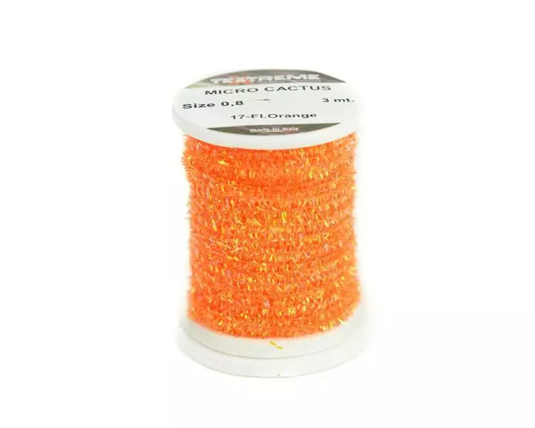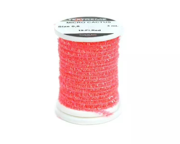 Ekstremt fin diameter spoolet perlekaktus chenille. Flott for hot spots, thorax og kropper på små fluer.