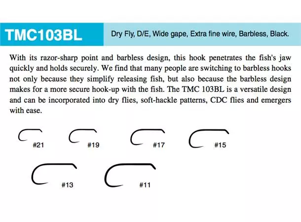 Dry Fly, D/E, Wide gape, Extra fine wire, Barbless, Black.