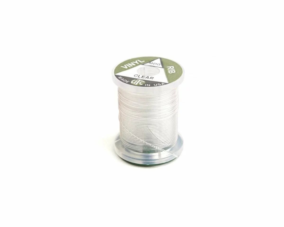 UTC Vinyl Rib is a translucent, D-shaped, plastic nymph ribbing material. This half-round material is soft and easy to work with. UTC Vinyl Rib comes in several diameters to suit whatever flies you are tying.