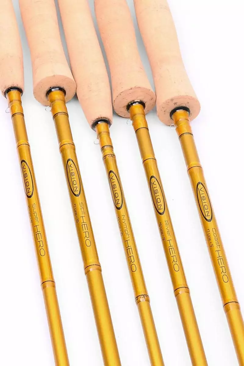 Vision HERO er en prisgunstig stangserie som er grundig utviklet og testet over tid som skal dekke de fleste utfordringer en fisker vil stå ovenfor når det det gjelder ulike fiskesituasjoner. Stengene er produsert i kvalitets høy-modulus 36tn karbon materiale og har en middels rask aksjon. Alle stengene er finjustert for hvilken type fiske de mest sannsynlig blir brukt på, derfor har Vision benyttet forskjellige karbonblandinger og harpiks for å oppnå ønsket karakter.